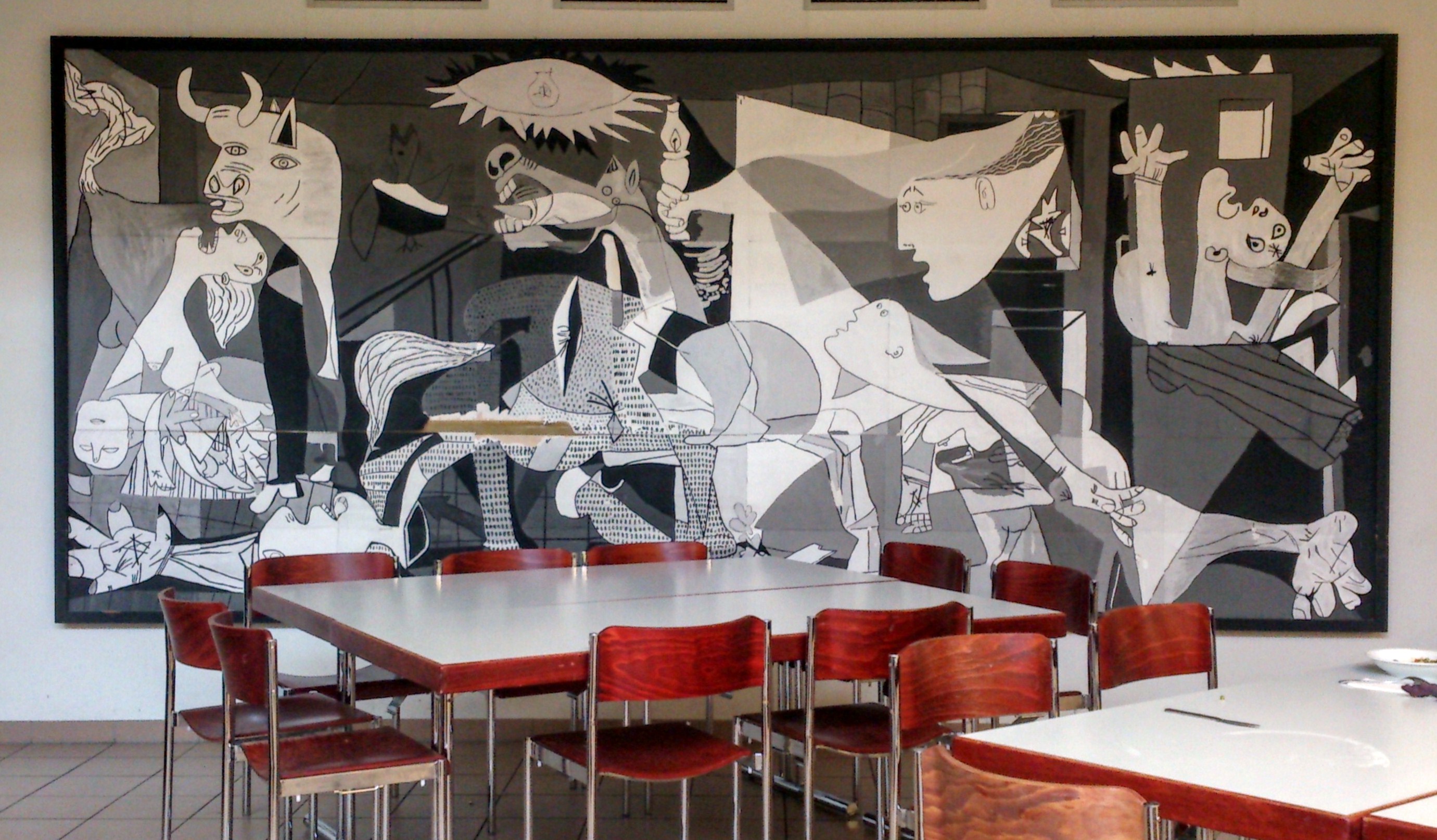 Viele Jahre hat das große Bild nach dem berühmten Gemälde "Guernica" von Picasso die Mensa geschmückt. Nun ist es sehr alt und an einigen Stellen kaputt. Deshalb haben wir beschlossen ein neues Bild zu erstellen.