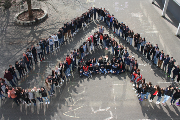 Die Abschlussklassen des 10. Jahrganges der Adolf-Reichwein-Gesamtschule haben es geschafft. Die Gesamtschule reichte das kreativste Foto der Abschlussklassen ein und sicherte sich damit 750 Euro für die Abschlussfeier.