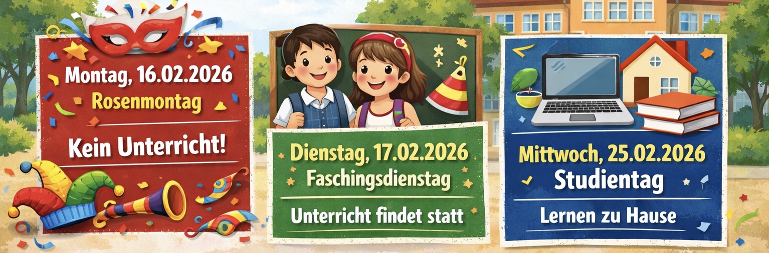 Der Unterricht findet nicht statt. - Dienstag, 17.02.2026 (Faschingsdienstag):