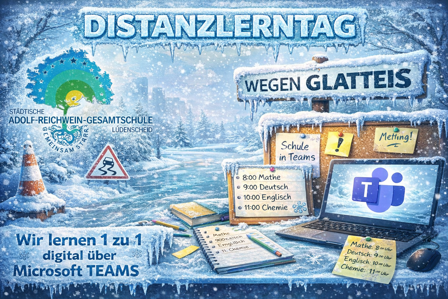 Die Städtische Adolf-Reichwein-Gesamtschule Lüdenscheid wechselt daher an diesem Tag in den Distanzunterricht.