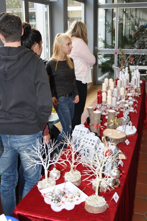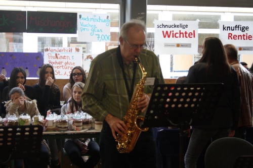 Auch der Förderverein hat wieder sehr fleißig die tollen Adventskränze und Weihnachtsdeko gebaut und verkaufte diese dann auf den Basar. Zudem verkaufte die neue Klasse von Fr. Wolff auch wieder Lose, mit denen mal tolle Preise gewinnen konnte. Es waren wirklich gute und schöne Geschenke dabei, die die Besucher an der Klassenständen erwerben konnten. Sehr viele Eltern kamen und aßen in der Schulmensa ein Stück Kuchen und tranken einen Kaffee oder hörten einfach der etwas Musik. Am frühen Morgen gab es auch für die Grundschüler Probeunterricht. Es wurden viele verschiedene Schulfächer angeboten, bei denen man sich aussuchen konnte, welches Fach man sich gerne anschauen wollte. Die Eltern bekamen in der Zeit eine Schulführung. Auch dieses Jahr gab es wieder viel Spaß und Weihnachtsstimmung auf unserem Adventsbasar, hoffentlich auch im nächsten Jahr. Also Leute, bis zum nächsten Adventsbasar.