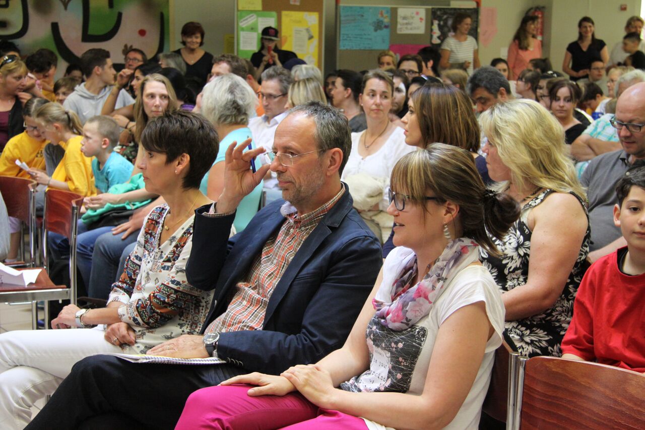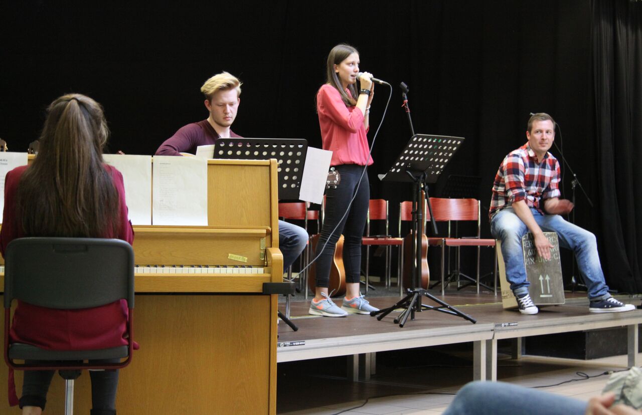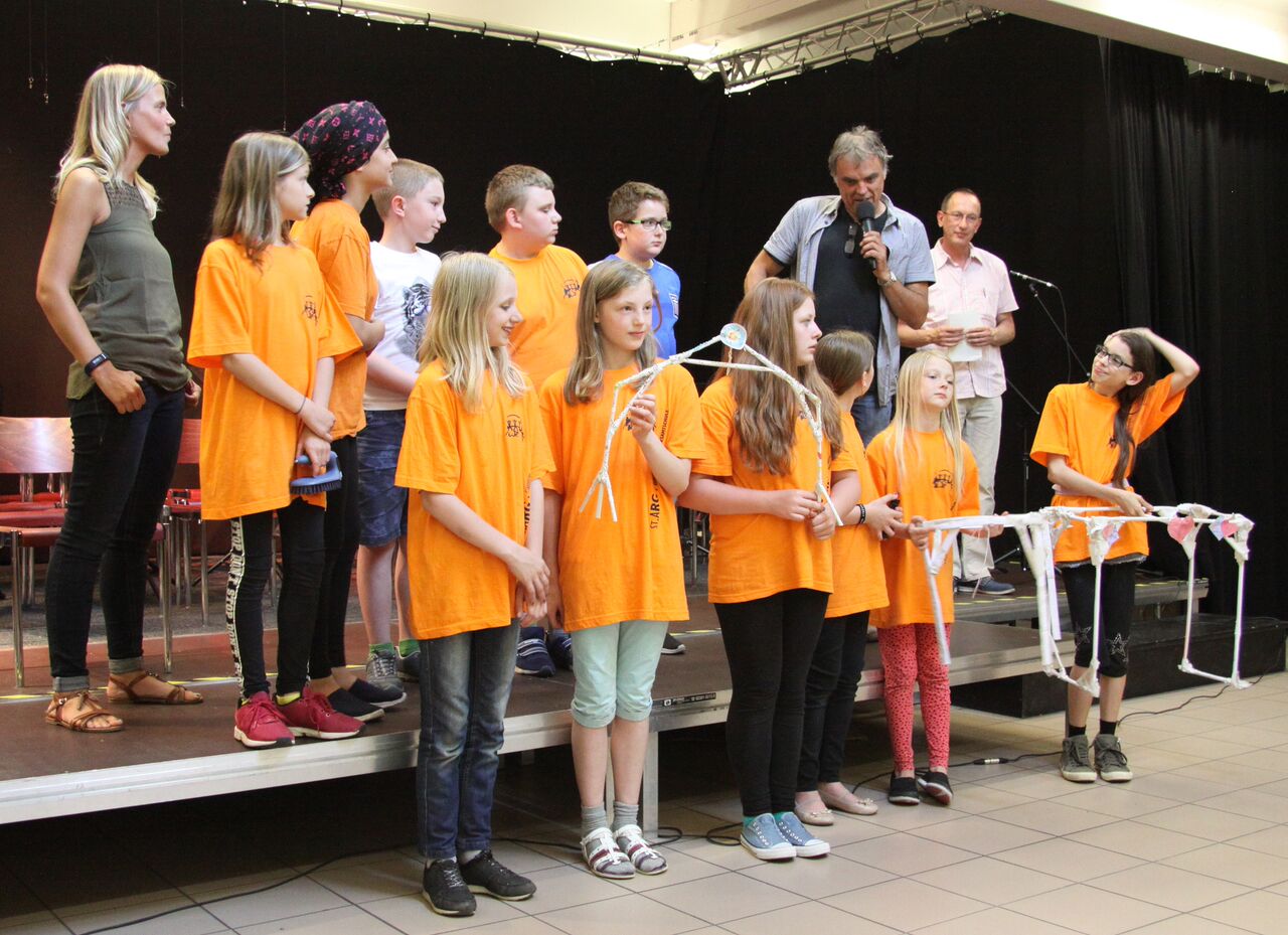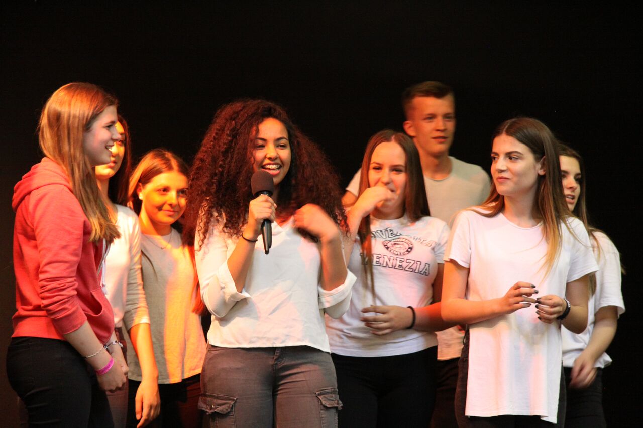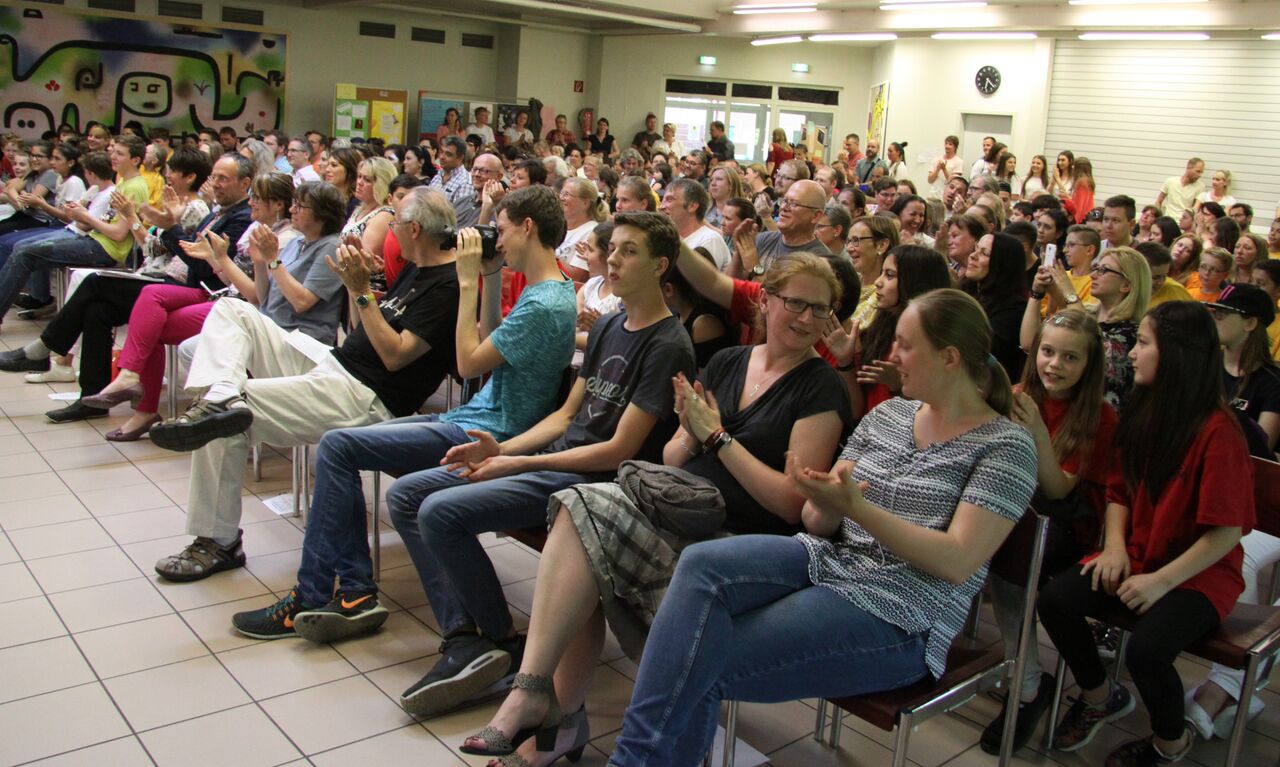 Mit einem bunten Programm präsentierten sich die Arbeitsgemeinschaften unserer Schule den vielen Besuchern in einer vollbesetzten Mensa. Die Schülerinnen und Schüler erhielten so die Möglichkeit, ihre außerhalb des regulären Unterrichts erlernten Fähigkeiten zur Schau zu stellen. Die Schulband, die Schulsanitäter-AG, die Gitarren-AG, unsere Forscherklassen mit den Schwerpunkten MINT und Musik, die DG-Kurse und der Chor stellten ihre Ergebnisse vor und sorgten für tolle Stimmung im Publikum.
