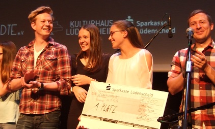 Jede Band hatte ca. 20 Minuten Bühnenzeit zur Verfügung. Zwischen den einzelnen Bandauftritten lockerte die Lüdenscheider Band FunKtastic (mit dem Bassisten Steven Stegnitz, ehemaliger Schüler der St.ARG) die Veranstaltung auf. Alle drei Bands hatten einen hörenswerten Auftritt und so fiel das Ergebnis denkbar knapp aus. Jede Band erhielt etwa ein Drittel der Stimmen. Aber die Schülerband der St.ARG konnte die entscheidenden Stimmen mehr für sich gewinnen und gewann den ersten Platz. Der künstlerische Leiter und Musiklehrer Stefan Hillbrunner hatte die Band optimal vorbereitet. Die Sängerin Christina Gravou beeindruckte mit ihrem gefühlvollen Gesang. Ihre Schwester Danai Gravou überzeugten an der Orgel und am Klavier. Daniel Scholl faszinierte das Publikum mit seinem abwechslungsreichen Gitarrenspiel. Beeindruckend waren auch die passenden Bilder auf der Leinwand im Hintergrund zum jeweiligen Song, die sich Stefan Hillbrunner hat einfallen lassen. Als 1. Preis erhielt die Gruppe einen Scheck in Höhe von 200,00 €, gespendet von der Sparkasse Lüdenscheid. Die Lehrerschaft der Adolf-Reichwein-Gesamtschule bedankt sich herzlich bei dem gesamten Team der Kultstädte, für die professionelle Durchführung des gelungenen Abends.