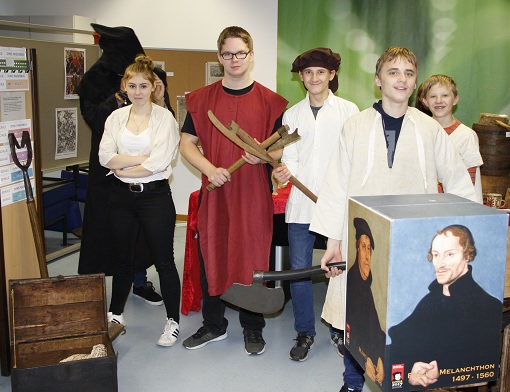 Am 31. Oktober 2017 jährt sich zum 500. Mal die Veröffentlichung der 95 Thesen, die Martin Luther, der Überlieferung nach, an die Tür der Schlosskirche in Wittenberg schlug. Anlass genug für Religionslehrer Reinhard Schmidt mit seinem Religionskurs des 9. Jahrganges eine außergewöhnliche Ausstellung zum Jubiläum ins Leben zu rufen.