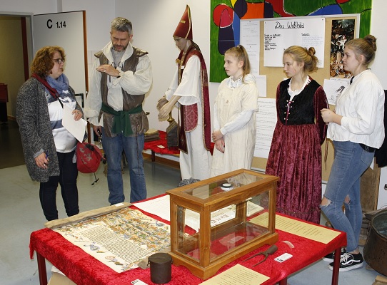 Wie lebten die Menschen zur Zeit Martin Luthers? Was bewegte die Menschen und die Reformatoren? Die Ausstellung bietet den Besuchern fünf Schwerpunkte: Das Leben im Kloster, die Rechtsprechnung der Justiz, Nahrung im Spätmittelalter, die Rollen von Mann und Frau sowie die bekanntesten Reformatoren. Besonders interessant ist die Ausstellung vor allem durch die zahlreichen originalen Gegenstände der Zeit, die größtenteils aus dem Privatbesitz von Reinhard Schmidt stammen. Dazu gehören Gebrauchsgegenstände des Alltags, aus der Kirche oder aber auch Folterwerkzeuge der Rechtssprechung. Die Schülerinnen und Schüler haben zu den jeweiligen Themenfeldern anschauliche Informationstafeln gestaltet. Am Mittwoch, den 18.10.2017 ist die Ausstellung von 16 bis 19 Uhr auch für die Öffentlichkeit zugänglich. Herr Schmidt wird die Besucher persönlich durch die Ausstellung begleiten.