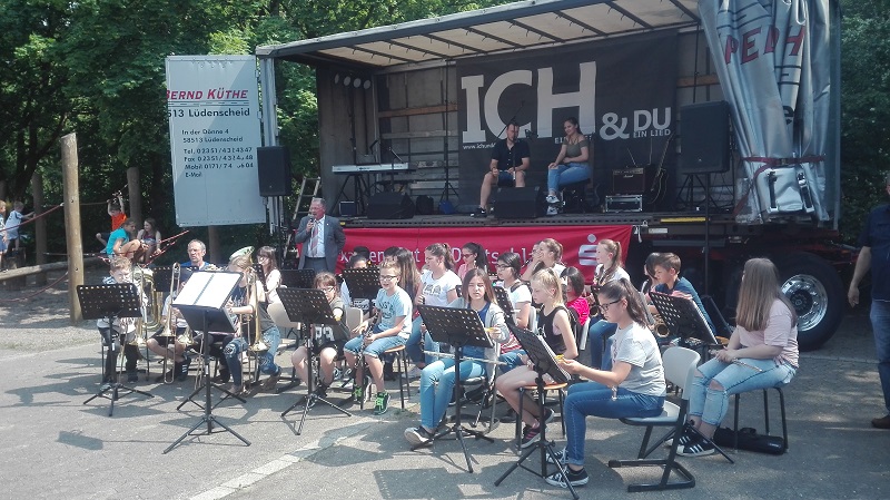 Bei bestem Sommerwetter fand am Samstag, 09.06.2018, auf dem Schulhof der Wehberger Grundschule, das Wehberger Stadtteilfest satt. An den vielfältigen Spielaktionen konnten sowohl große und als auch kleine Besucher ihr Geschick beweisen. Zahlreichen Essenstände sorgten für die kulinarische Grundlage. Als Vorsitzender der Stadtteilkonferenz zeigte sich Pfarrer Sebastian Schulz mit dem Fest sichtlich zufrieden. Die Bläserklasse des 6. Jahrganges der Adolf-Reichwein-Gesamtschule überzeugte unter der Leitung von Armin Krull mit stimmungsvollen Musikstücken. Die Kunstklasse des 5. Jahrganges zeigte kreativ gestalte Meeresbewohner aus Plastikmüll. Dieter Dzewas lobte das Engagement der jungen Musiker und Künstler.