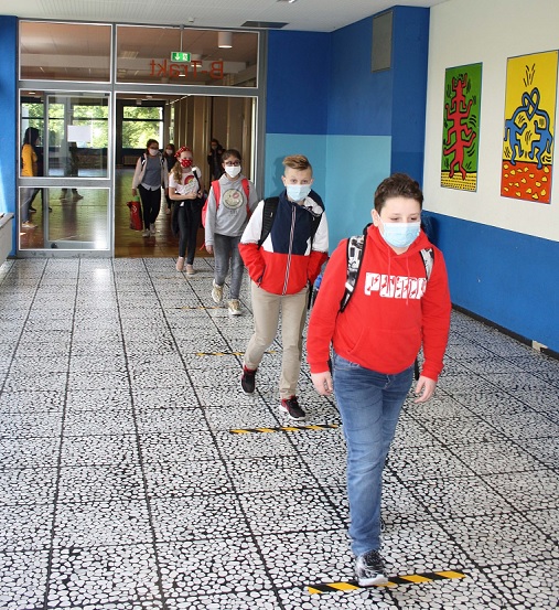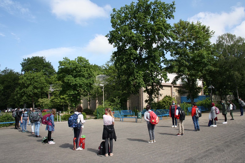 Ganz anders verhält es sich, sobald die Schülerinnen und Schüler das Schulgelände verließen. Leider, muss festgestellt werden, dass nahezu alle Schülerinnen und Schüler ihre Masken abnahmen und keine Abstandregeln mehr einhielten. Das Verhalten der Schüler spiegelt damit gewissermaßen die zunehmende gesamtgesellschaftliche Vernachlässigung der Corona-Pandemie wieder. Dabei spielte die Zugehörigkeit, zu einer bestimmten Jahrgangstufe, keine Rolle. Die relativ geringen Infektionszahlen in Deutschland und die schrittweise Lockerung der Corona-Regeln im öffentlichen Leben führen offensichtlich bei vielen Eltern und Schülern zu einem leichtfertigen Umgang mit den Abstands- und Hygieneregeln. Schüler umarmen sich, halten keine Abstandregeln ein und tragen keinen Mundschutz. Das Corona-Virus ist noch da, es gibt schwere Infektionen und Todesfälle, auch im Märkischen Kreis. Die jüngsten Ereignisse in Göttingen zeigen unmissverständlich, wie schnell sich Infektionsketten ausbreiten, auch in der eigenen Familie.