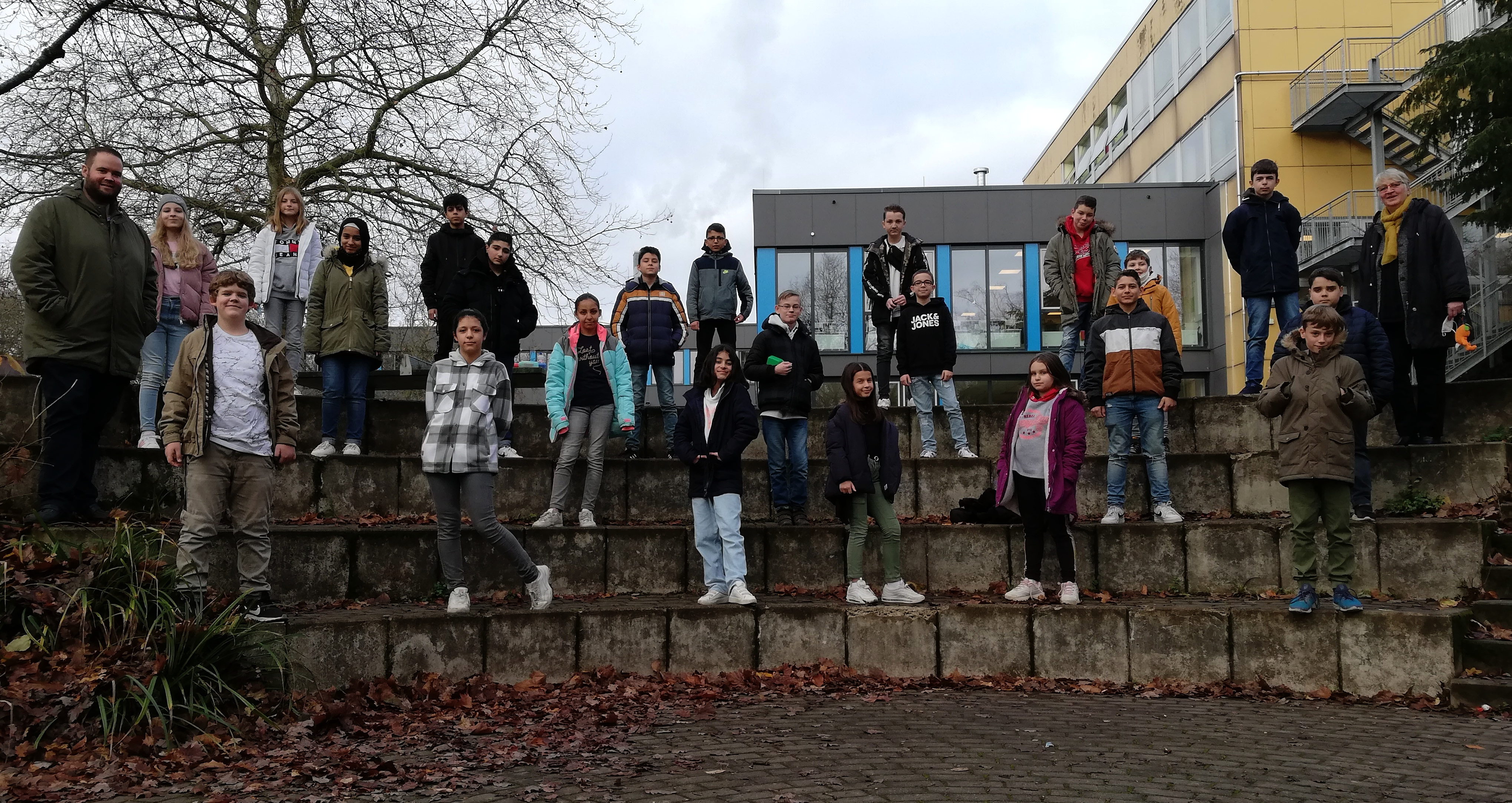 Liebe Schulgemeinde, wir sind die aktuelle 5.2! Frau Hegmanns und Herr Gossens bilden unser Klassenlehrerteam. Unser Schwerpunkt ist NATUR. Aus diesem Grund verbringen wir unsere Natur-AG-Stunden sehr gerne draußen im Wald. Wir bestimmen Bäume und Sträucher und lernen so viel über die Natur um uns herum. Nur so wird man sich bewusst, wie schützenswert unsere Natur doch ist. Das erste Projekt unserer Klasse ist ein Herbarium. Die stolzen Besitzer zeigen ihr Herbarium auf unserem Gruppenbild in die Kamera.