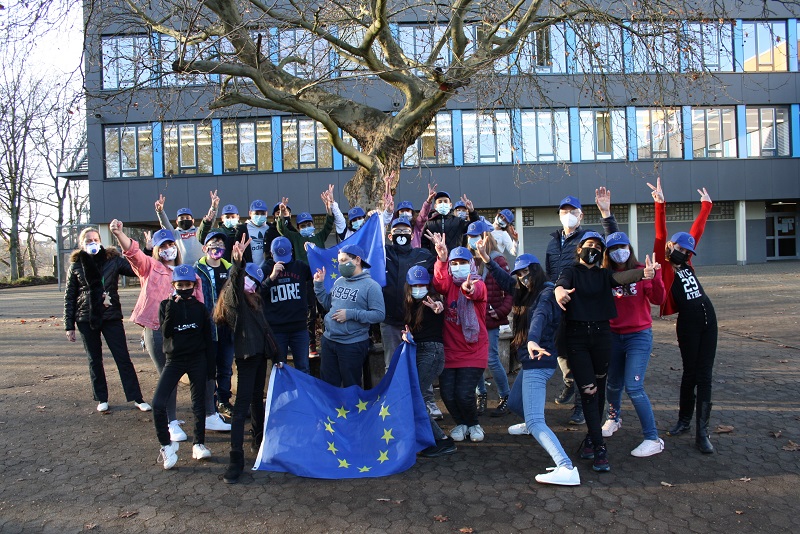 Wir sind die 5.5, die Europaklasse der Adolf-Reichwein-Gesamt- und Europaschule. Unsere Klassenlehrerin ist Frau Keleş. Unsere Klasse ist eine bunte Mischung, mit Schülern und Schülerinnen aus ganz unterschiedlichen Kulturen und Religionen sowie aus verscheidenen Nationen, genau wie Europa. Unsere blauen Europakappen zeigen jedem, welche Schwerpunktklasse wir sind. Wir befassen uns mit allem, was mit Europa zu tun hat. Wir lernen die Länder Europas kennen und begrüßen uns jeden Tag in einer anderen Sprache. Die Geschichte Europa erforschen wir auf verschiedenste Weise. In der 6. Klasse beschäftigen wir uns mit der EU und nehmen am Europäischen Wettbewerb teil, wo man tolle Preise gewinnen kann. Wenn es wieder möglich ist zu reisen, würden wir gerne die EU in Brüssel besuchen und das Europaparlament ansehen. In der Europawoche im Mai starten wir viele Aktivitäten in unserer Europaschule um den Europagedanken zu stärken.