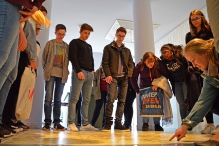 Thematisiert wurde in unserem Theaterstück insbesondere die vermehrt auftretende Überwachung unserer Generation und die Akzeptanz des Einzelnen. Die Aktualität des Themas, gerade durch den NSA-Skandal, beschäftigte uns und weckte das Interesse des gesamten Kurses und der Lehrerinnen Frau Ommer und Frau Michalzik, die das Skript zu dem Stück verfassten. Auch kreative Arbeiten wie das Bühnenbild, Marketing, Kostüm und Technik hat der Kurs selbst übernommen.