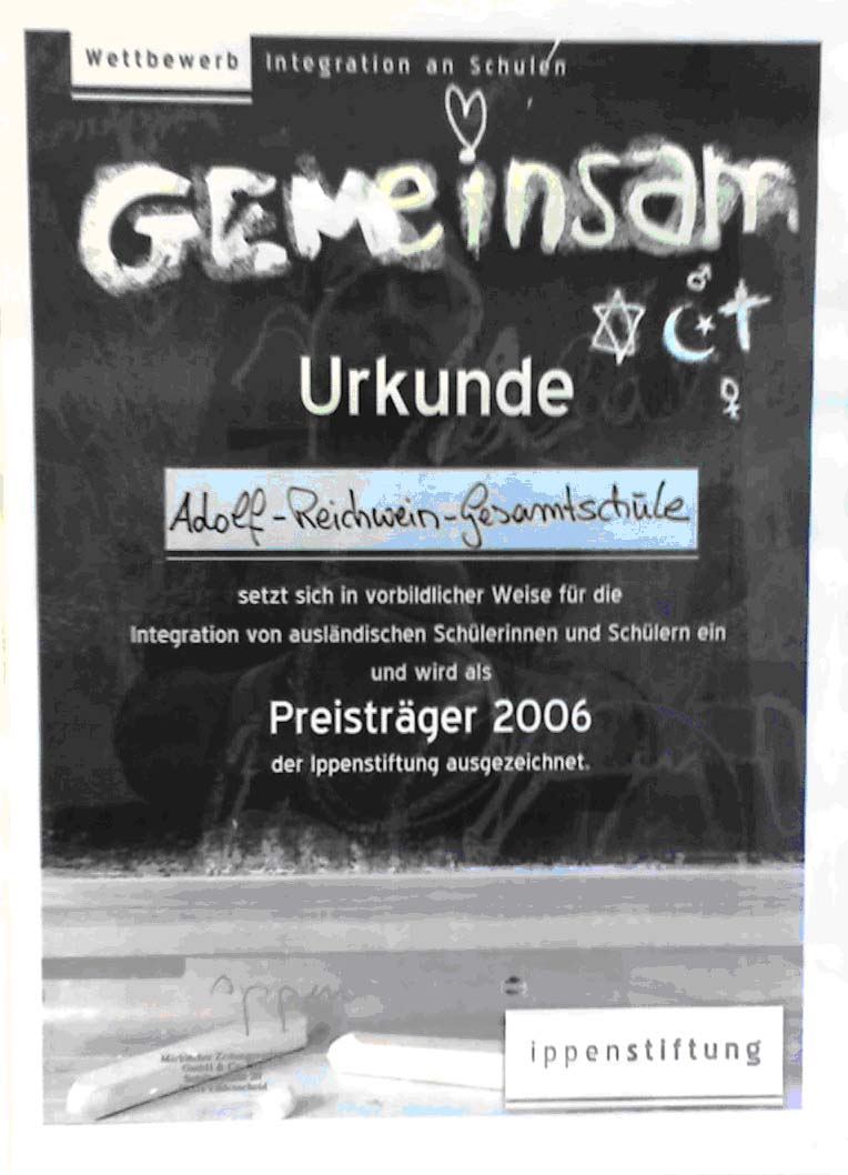 Im Jahr 2000 wurde von dem Münchner Verleger Dr. Dirk Ippen die gemeinnützige Ippen-Stiftung gegründet. Die Ippenstiftung ehrt Projekte an Schulen, die sich für die Integration von Schülerinnen und Schülern mit unterschiedlichen kulturellen Hintergründen einsetzen. Die Adolf-Reichwein-Gesamtschule erhielt die Auszeichnung für ein an der Schule entwickeltes Konzept zur Sprachförderung von Kindern mit Migrationshintergrund. |